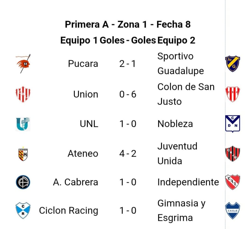 DEPORTES RESULTADOS Y POSICIONES FECHA 8 ZONA 1 LIGA SANTAFESINA. Luciano octubre 19, 2025 Acerca del autor Luciano Editor Ver todas las entradas Navegación de entradas Anterior: TORNEO REGIONAL LISTA DE BUENA FE CENTRAL SAN JAVIER.Siguiente: RESULTADOS Y POSICIONES FECHA 8 ZONA 2 LIGA SANTAFESINA. Historias relacionadas DEPORTES La Liga Sanjustina de fútbol abrió las inscripciones de equipos. Luciano enero 8, 2026 DEPORTES Torneo regional cuartos de final zona Litoral Sur vuelta. Sanjustino vs Atlético María Grande. Luciano enero 8, 2026 DEPORTES Torneo regional cuartos de final zona Litoral Sur vuelta Colón de San Justo vs Ben Hur. Luciano enero 8, 2026